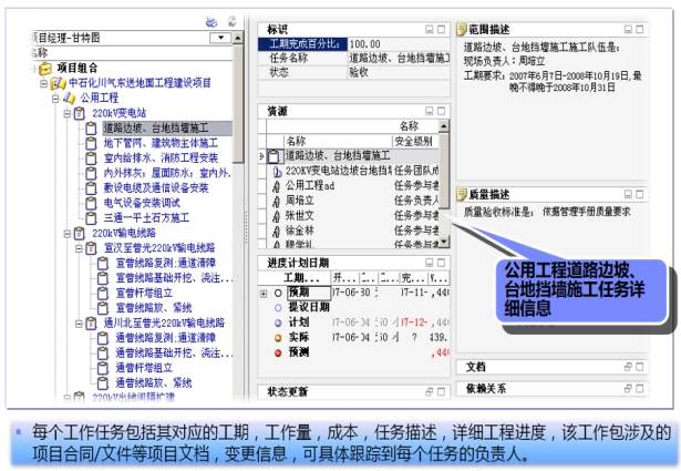 “以前每到周末、月末,都要打很多电话向各个项目部要各种各样的报表,并且好不容易要上来的报表格式、内容都还不统一,不是缺了这项,就是少了那项,很难掌控项目的进展情况。现在好了,不仅各个项目部能通过信息平台方便地提交各种项目信息,而且信息平台能自动分析、综合项目部提交的信息,一目了然地展示项目群的整体绩效情况。这对我们掌控项目进展,科学决策有很大帮助。”